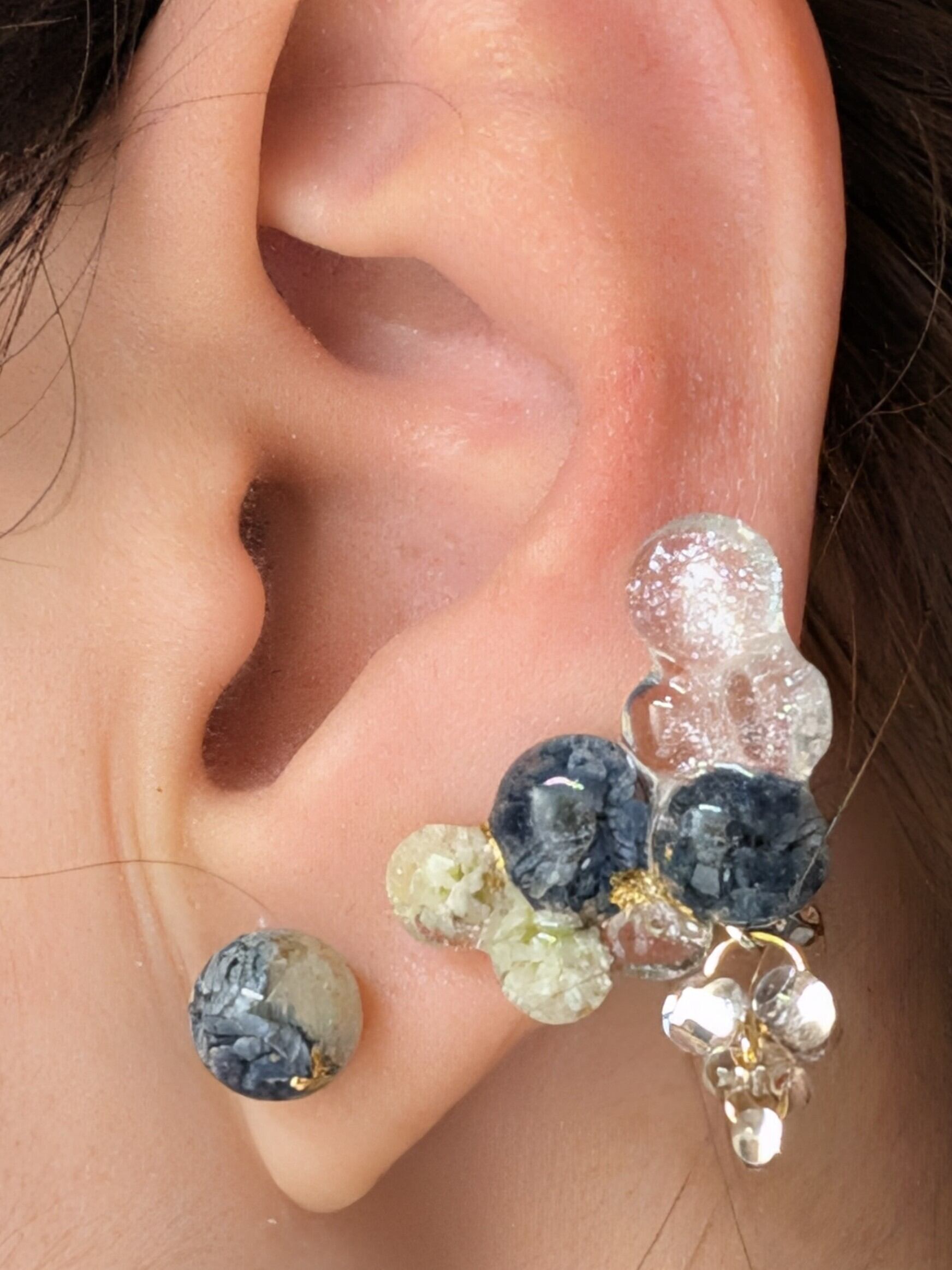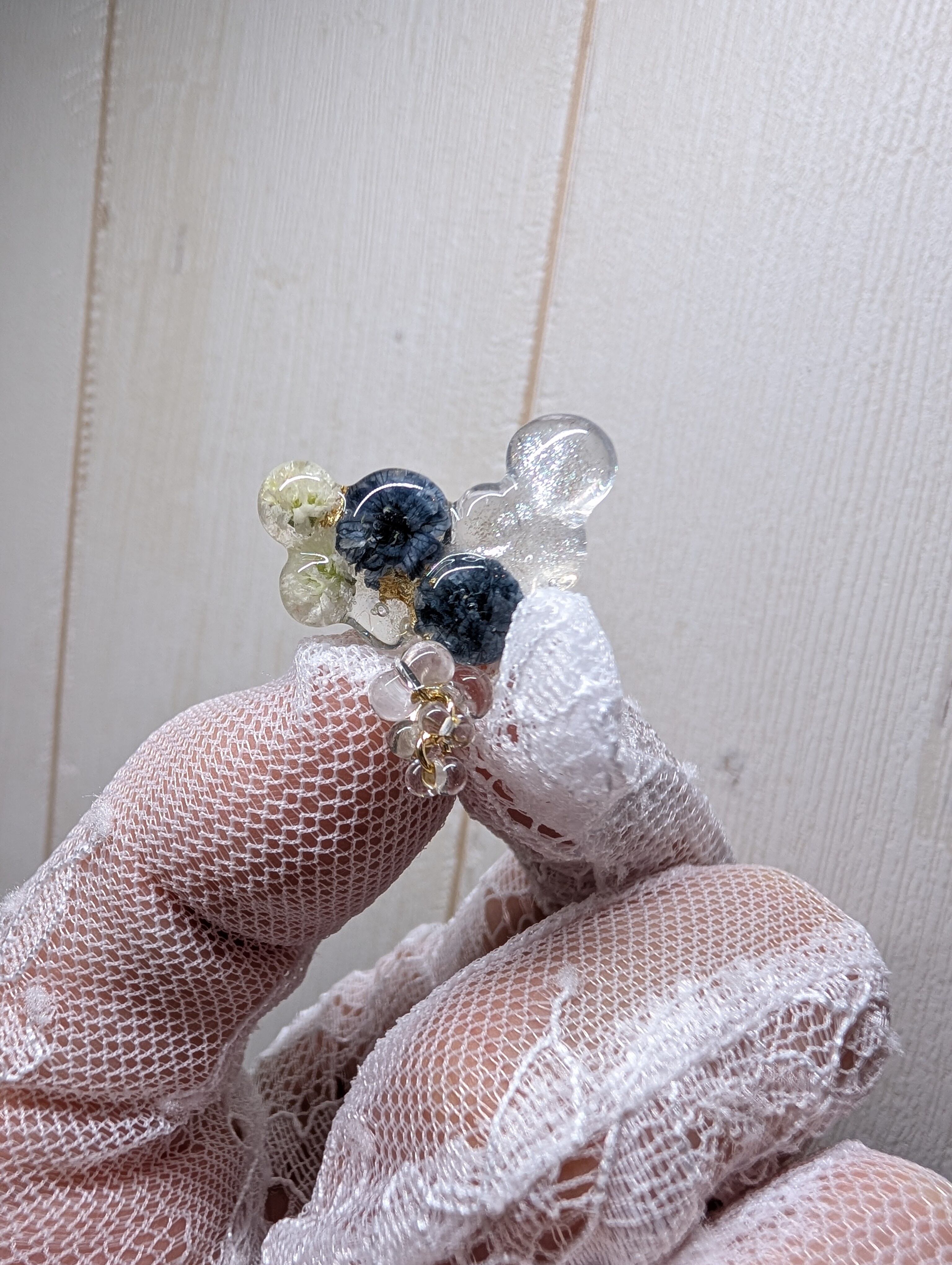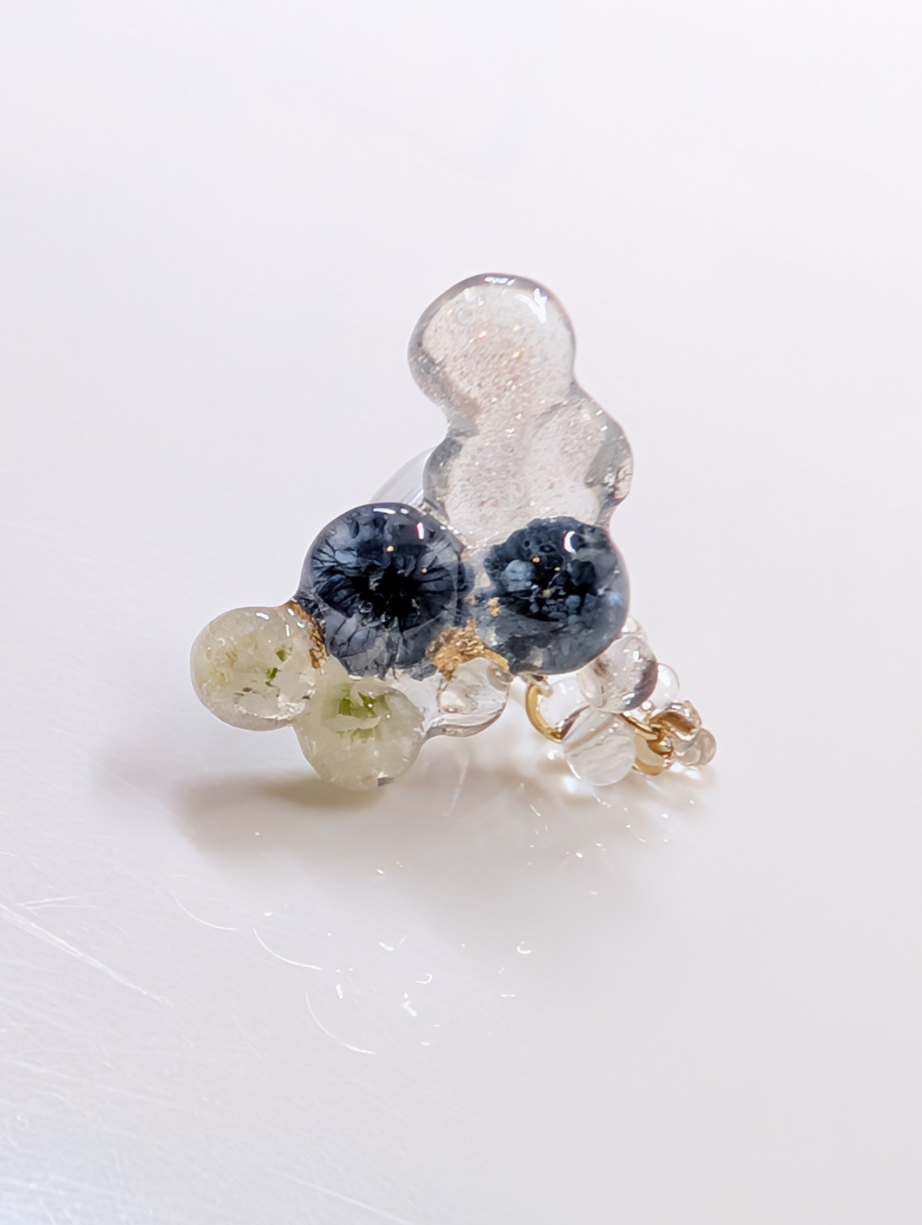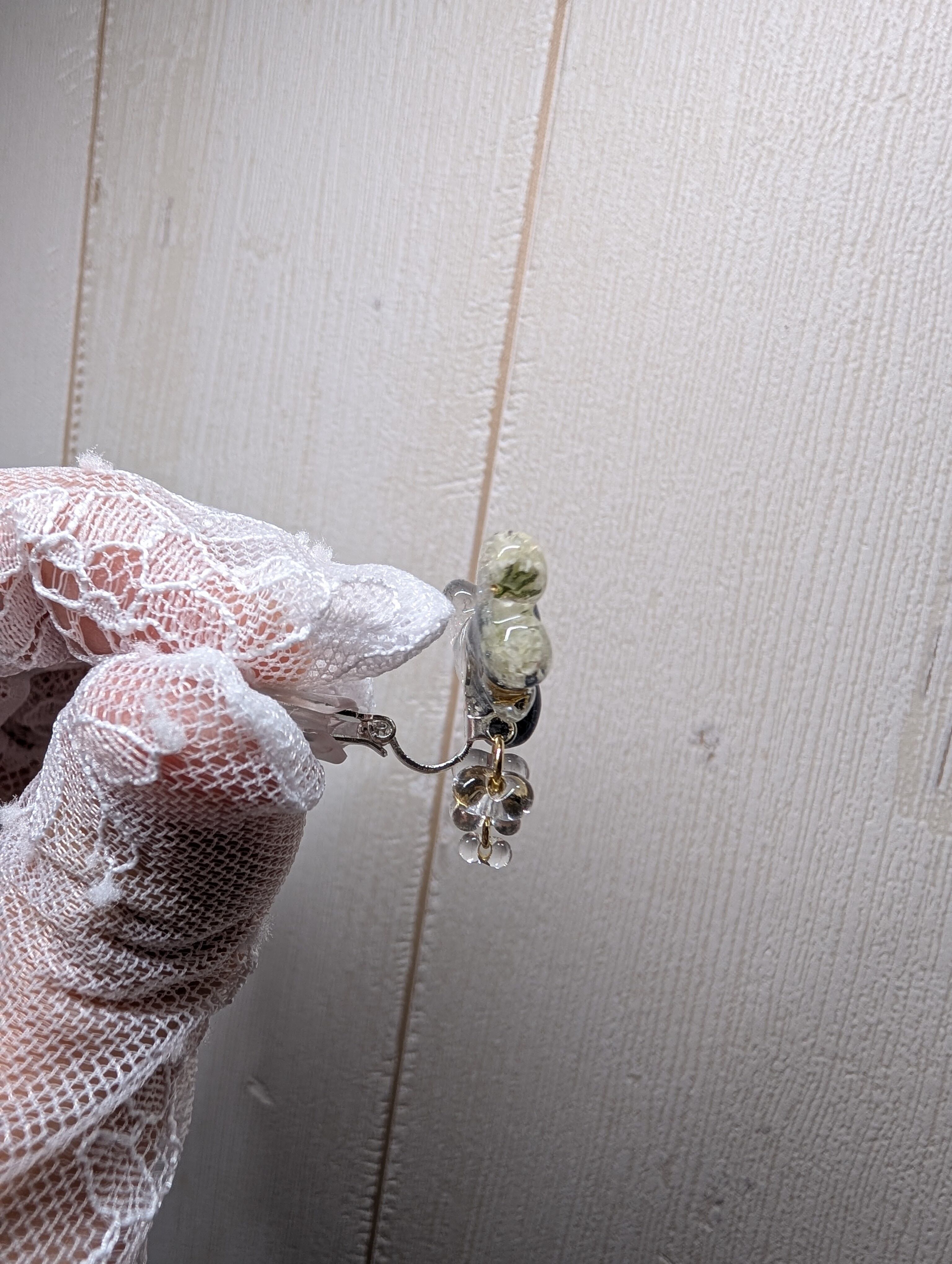 ダークグレー❁本物のかすみ草❁イヤーカフ